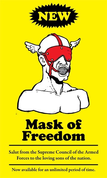 Året etter fulgte "No time for art", om politiet og militærets vold mot opposisjonelle – fra Mubarak-regimets siste dager til Mursis første. Billetten til denne forestillingen besto av klistremerket "Masks of freedom"(bilde under), av den etterhvert så kjente kunstneren Ganzeers. Ganzeer er et pseudonym som betyr kjetting eller kjede, nærmere bestemt sykkelkjede, og som han selv har uttalt, er kunstnere en del av den mekanismen som driver ting fremover. "Vi er ikke den drivende kraften, det er ikke vi som trår pedalene, men vi kan knytte sammen ideer, og ved å gjøre det får vi ting til å bevege seg."